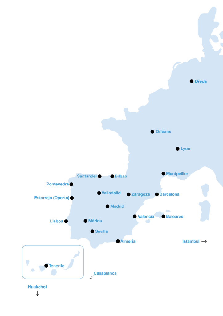 Contamos con una amplia cobertura internacional a través de nuestras oficinas y laboratorios de análisis de agua ubicadas en España, Francia, Portugal, y una gran red de distribuidores en Europa y África.